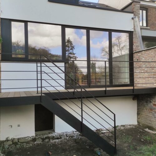 Terrasse placée à Namur dans une maison en rénovation. Travaux réalisés par Concept Ecologis. Design Conext Architectes.
