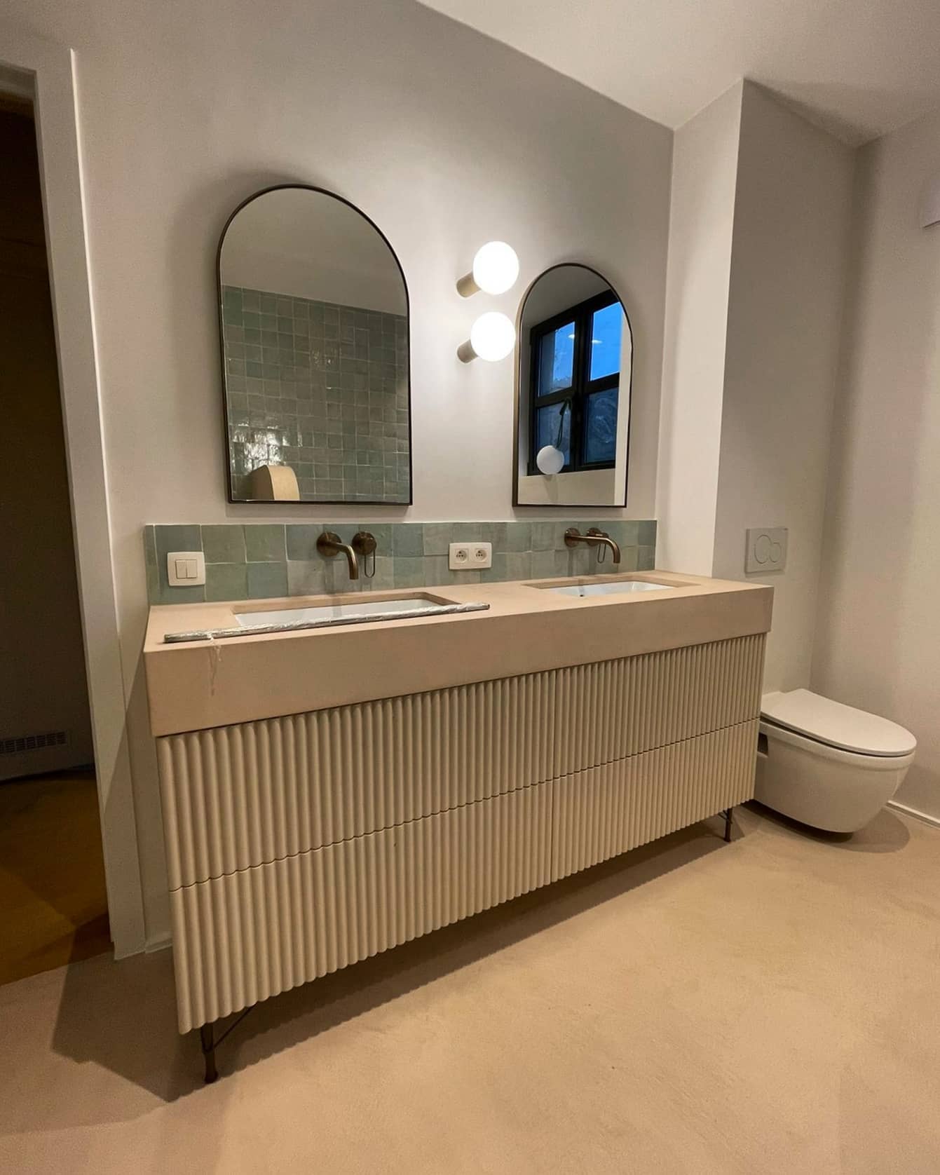 Verrières de salle de bain placées dans une maison en rénovation à Bruxelles. Projet réalisé en collaboration avec Jean-Pierre Herter – Arterra Architecture.