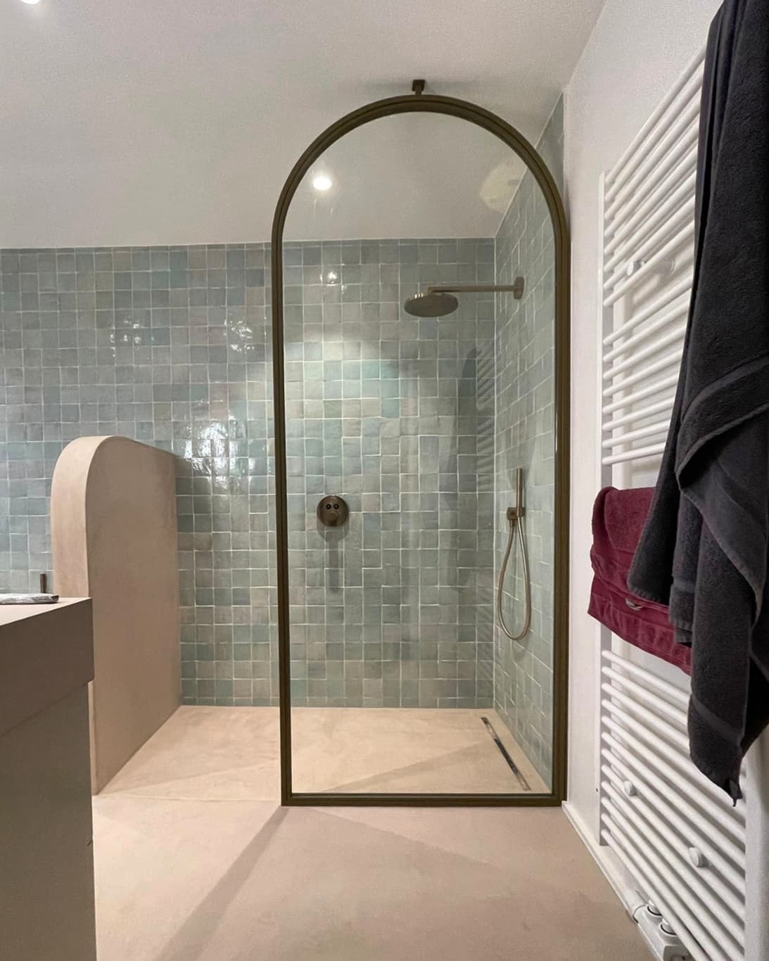 Ces parois de douche en verre feuilleté de 10 mm avec ouvrant ont été installées dans un appartement au quartier Schuman à Bruxelles Collaboration avec le Studio Julie Hérion – Studio d’architecture d’intérieur – studiojulieherion.be